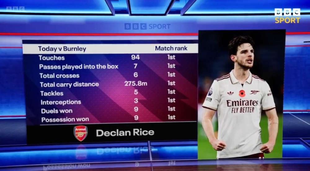 Declan Rice has been the standout — the top-rated midfielder in the Premier League, according to WhoScored. He does everything: breaks play, builds play, drives forward, stops counters, delivers set-pieces and even arrives late in the box like he did against Burnley.